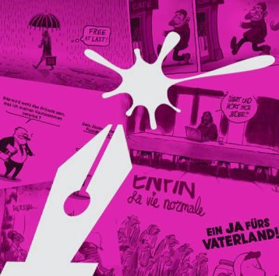 Die neuste Auflage des begehbaren Jahresrückblicks bringt wiederum praktisch alle Karikaturisten und Cartoonisten der Schweiz zusammen. Diese Zeichnerinnen und Zeichner sind dabei. Ab 13. Dezember im Museum für Kommunikation Bern.