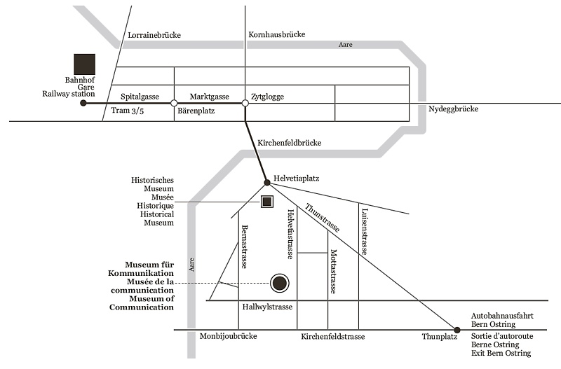 Mit dem Auto: Autobahnausfahrt Bern Ostring, Richtung Thunplatz, weiter bis Helvetiaplatz. Das Museum hat keine Parkplätze.